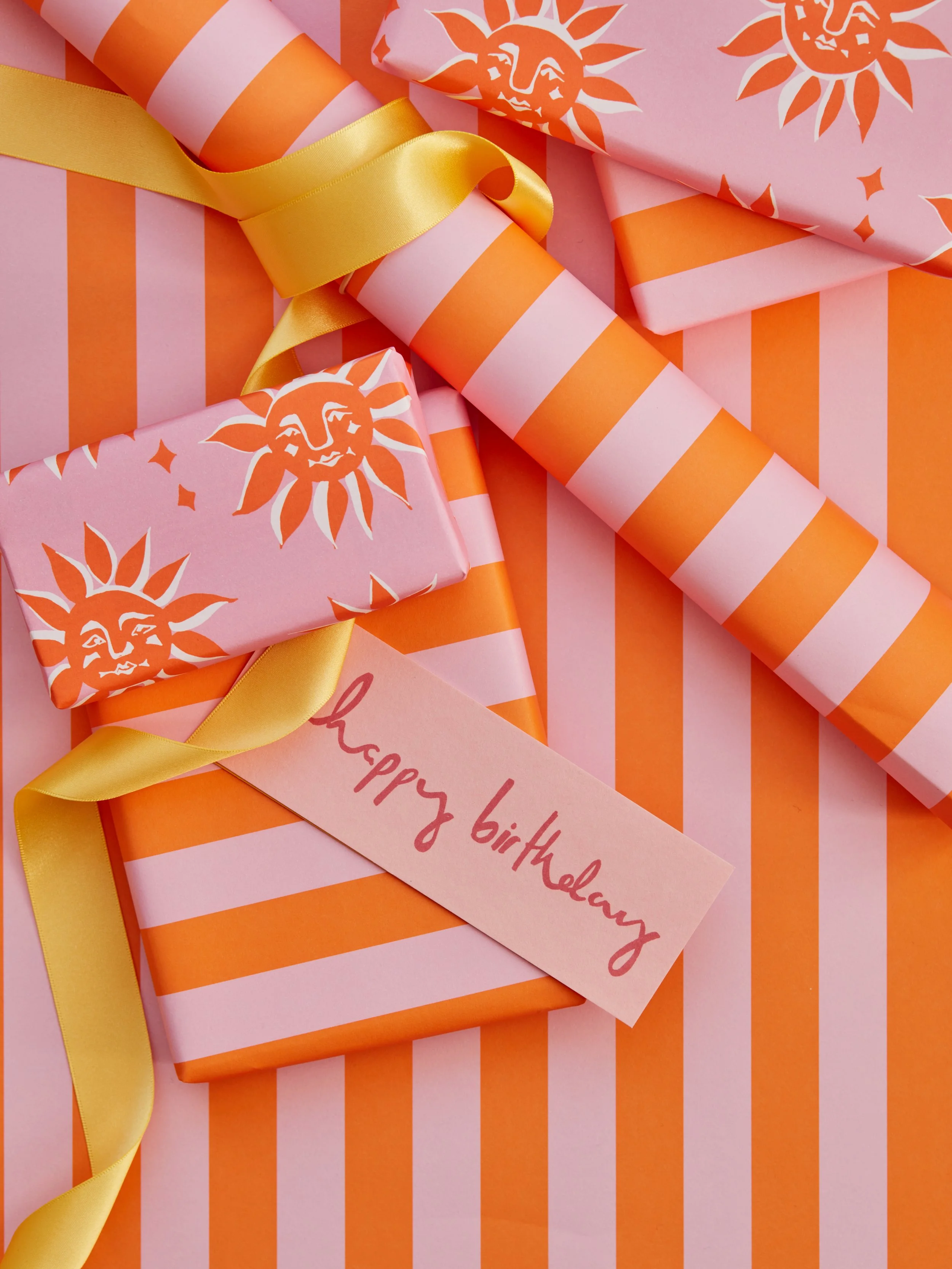 Classic stripe gift wrap in orange and pink